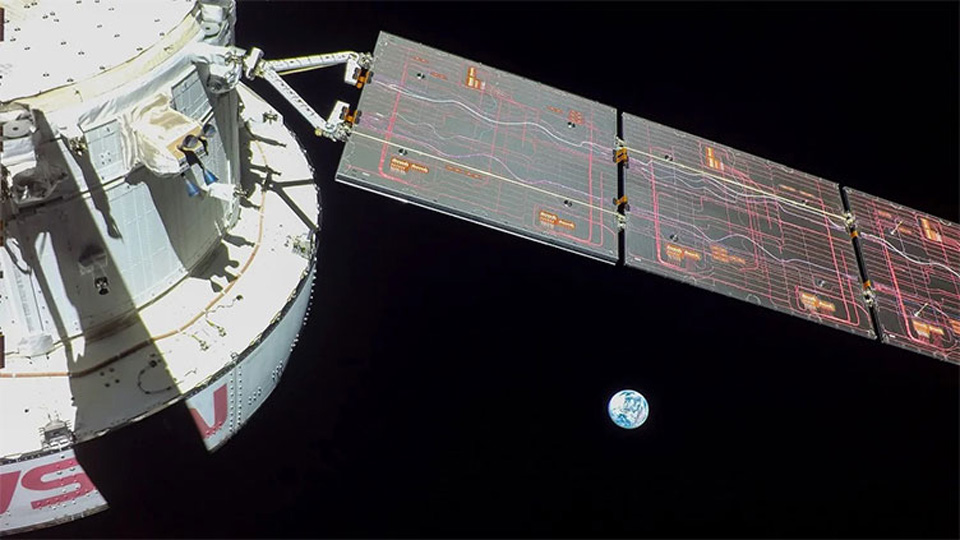 Earlier in the mission, Orion spent about six days in "distant retrograde orbit" around the Moon, meaning at high altitude and traveling opposite the direction the Moon revolves around Earth.