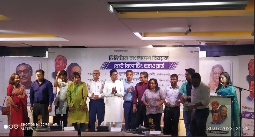 A total of nine journalists were given the award under two categories- television and print, and online media - after evaluating 300 reports published and aired in different TVs, radios, print and online media on the government's land marking initiatives to transform the country into 'Digital Bangladesh' by 2021.