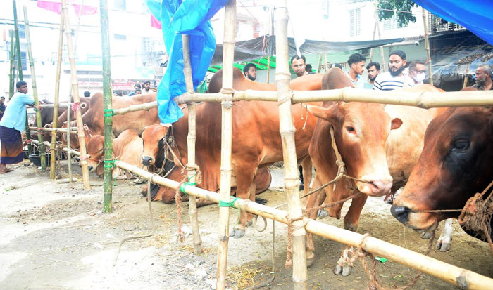 A huge number of cattle have also been brought at Meradia haat in the Dhaka South City Corporation area. Apart from designated places, cattle are being brought at alleyways as well.
