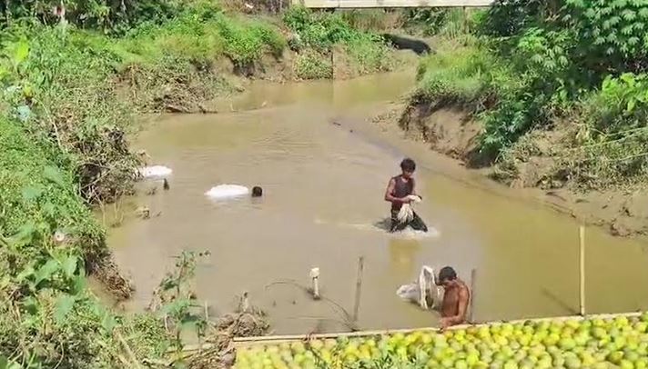 On a field visit to several areas in Khagrachhari, this innovative method was observed in action. At first glance, it might appear that the jambura are floating in the water, spoiled. But in reality, this is not the case. In the hill regions of Khagrachhari and Rangamati, jambura are now being transported via rivers and streams.