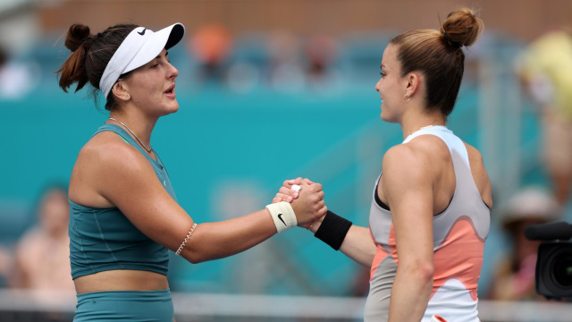 In another surprise, Canadian Bianca Andreescu, the former US Open winner now ranked 31st, overcame seventh seed Maria Sakkari of Greece 5-7, 6-3, 6-4, in a gruelling three-hour, three-minute battle in the early afternoon South Florida sun.