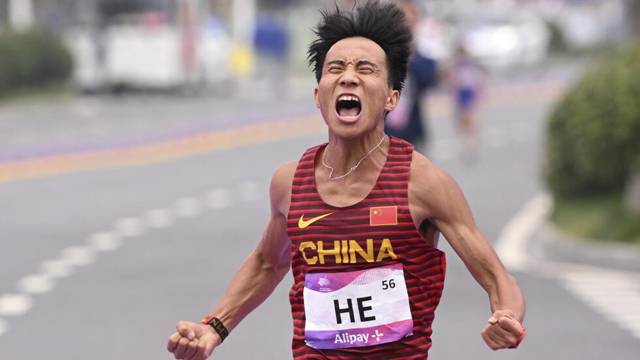 He, who came 45th at the August world championships in Budapest, was neck and neck with North Korea's Han Ilryong at the 40 kilometre mark of the Qiantang River Green Belt course.