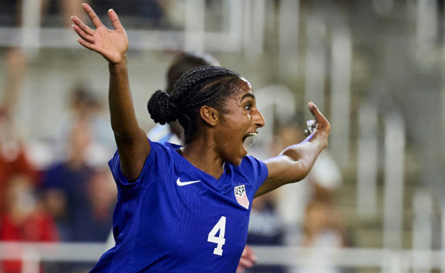 Girma, praised by Hayes during the Paris Games as "the best defender I've ever seen," scored her first international goal to put the United States up 1-0 with a close-range header in the 37th minute.