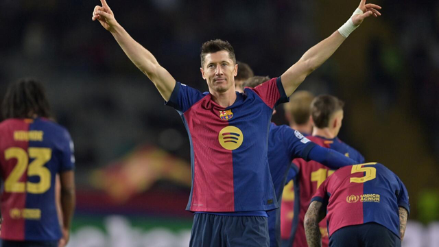 The 36-year-old Pole has netted 23 goals in 21 games across all competitions this season, taking Barcelona top of the Spanish league and up to third in the European standings.